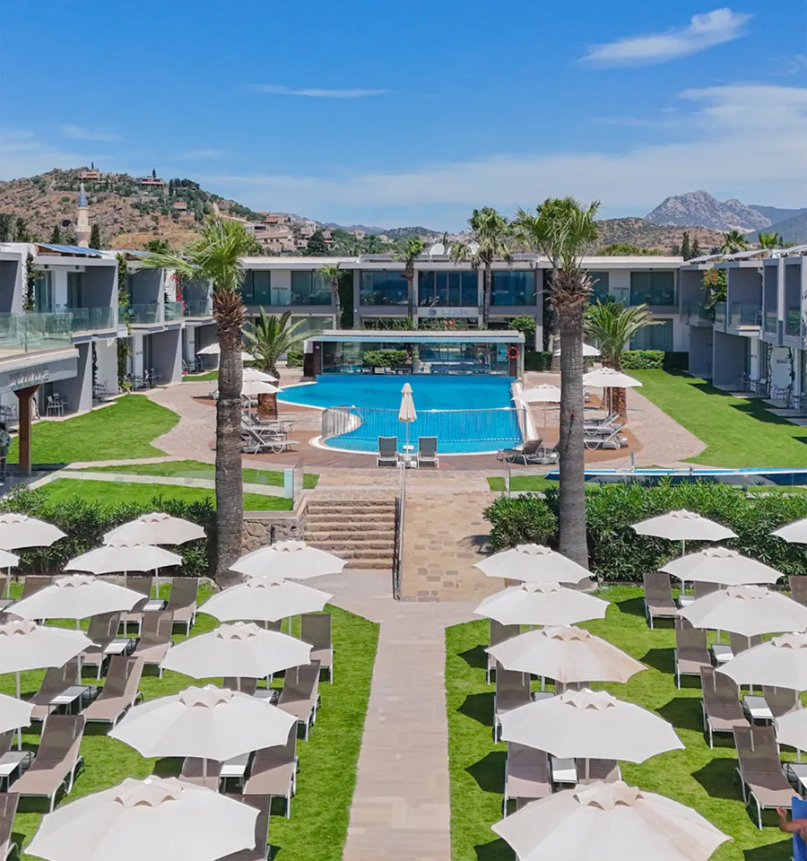 1.200 m² özel kum sahili, 300 m² iskelesi, güneşlenme terasları ve VIP localarıyla Ege’nin sadeliğini, şıklıkla buluşturur.